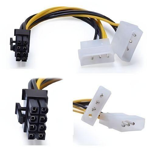 Cabo adaptador para transformar dois conectores de alimentação Molex IDE (LP4), em uma conexão de energia de 8 pinos para placas de vídeo.
