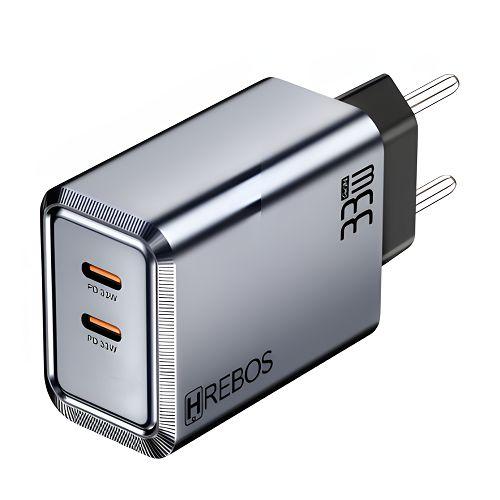 CARREGADOR PARA CELULAR 33W USB-C x 2 HREBOS CRG-261