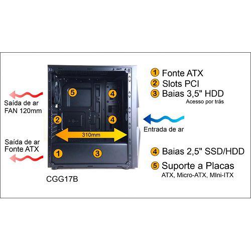 GABINETE GAMER S/ FONTE C/2 COOLER RGB PIXXO CGG17B