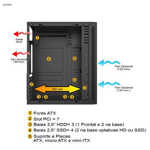 ATENÇÃO: Ao usar ao menos 01 cooler na frontal, perde 01 baia de HD 3,5.