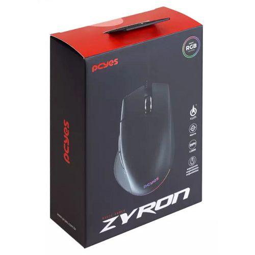 MOUSE USB GAMER ZYRON 12800 DPI 1,80METROS RGB PCYES PMGZRGB
